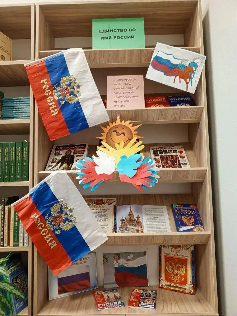 В преддверии праздника Гатлукайская библиотека подготовила выставку просмотр и провела мероприятие «Единство во имя России», которая познакомила читателей с иллюстрированными энциклопедиями представленными на выставке.