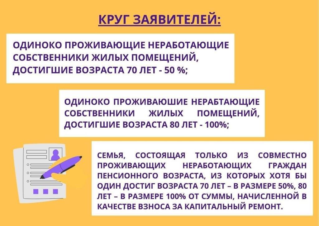 Компенсация расходов на уплату взноса на капитальный ремонт общего имущества в многоквартирных домах для граждан старше 70 лет