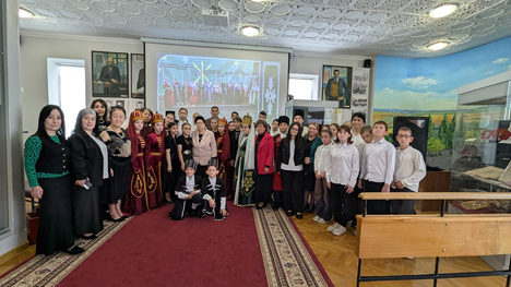 Главными героями праздника стали ученики 8 класса СОШ №6 аула Пшичо. Они с гордостью продемонстрировали костюмы, созданные мастерицей Риммой Хапачевой.