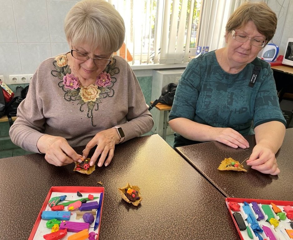 В рамках программы «Активное долголетие» в группах отделения дневного пребывания граждан пожилого возраста и инвалидов ГБУ РА «КЦСОН в г. Майкопе» специалист по социальной работе Карапетьян Аэлита провела занятия, где получатели социальных услуг учились изготавливать поделку из пластилина и природного материала «Ёжик».