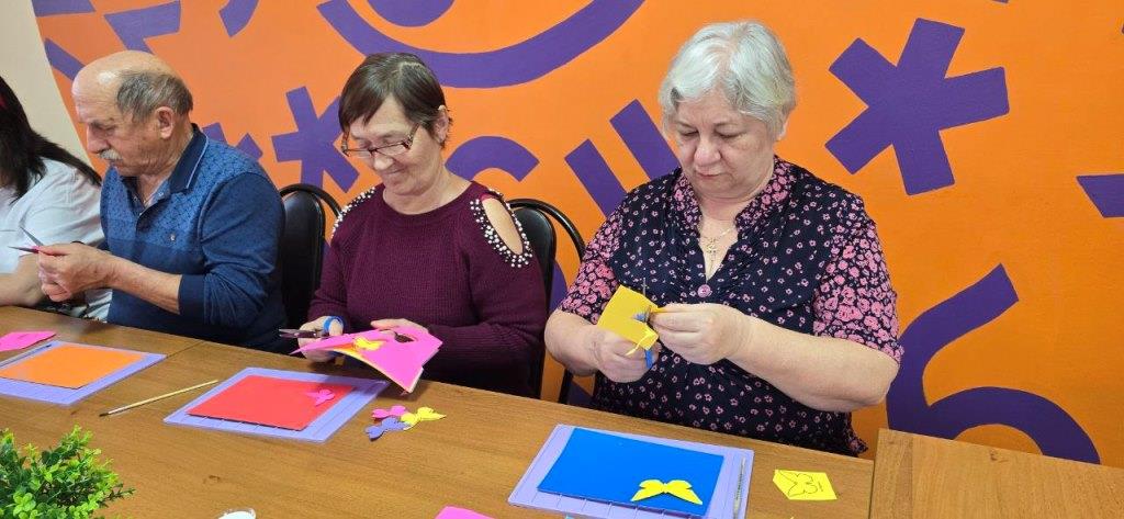 Для представителей старшего поколения было организовано увлекательное творческое занятие по созданию красочной поляны бабочек из цветной бумаги. Каждый участник проявил свою фантазию и мастерство, создавая уникальные образы ярких крылатых красавиц.