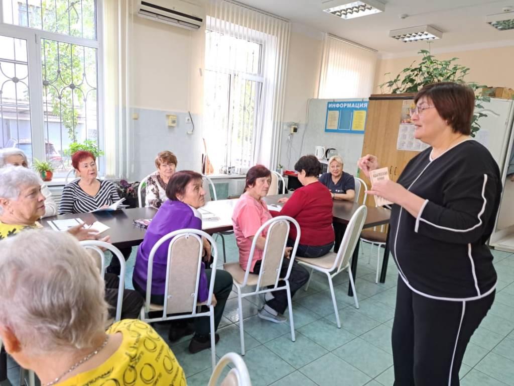 С целью сохранения народных традиций, обычаев и истории адыгов в отделении дневного пребывания ГБУ РА "КЦСОН в г. Майкопе" (заведующий Иванова Н.Н.) сотрудник сектора "Краеведение"АРЮБ провела тематический час "Золотая тыква". Библиотекарь рассказала откуда была завезена тыква, о ее полезных свойствах и ее применении в быту и кулинарии. Участники мероприятия также смогли оз