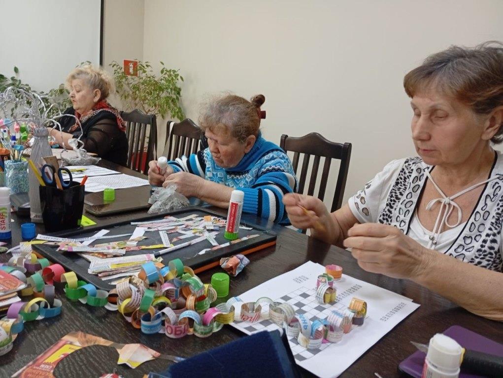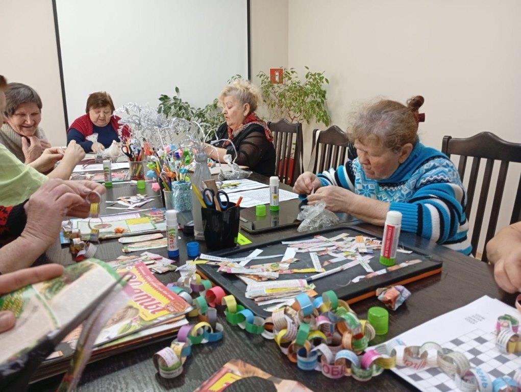 Центральным событием дня стало изготовление праздничной гирлянды. Собрав старые журналы, участники мастер-класса принялись с усердием вырезать нужного размера детали. Этот процесс словно перенес их на десятилетия назад, в ту самую юность, когда подобные поделки украшали комнаты и создавали неповторимое ощущение праздника.