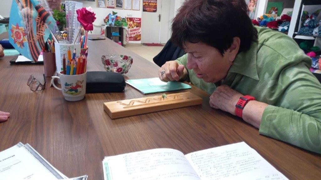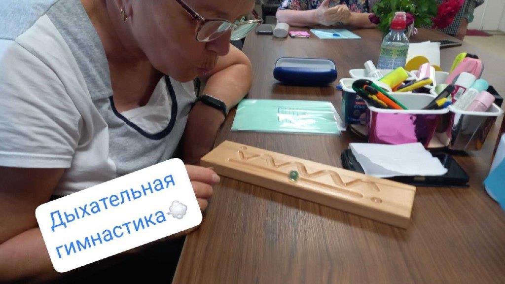 В рамках занятия с психологом Восканян А.А. в отделении дневного пребывания Тахтамукайского района проводилась дыхательная гимнастика с использованием тренажёра — деревянной дощечки с узорами и шарика. Подопечные выполняли упражнения, дуя на шарик, чтобы он попал в нужное отверстие, что способствовало развитию дыхательной активности, улучшению координации и концентрации внимания. Упражнение вызвало положительные эмоции, повысило спокойствие и настроение участников. В целом, занятие прошло успешно, участники продемонстрировали улучшение дыхательной системы и повысили мотивацию к регулярным дыхательным практикам.