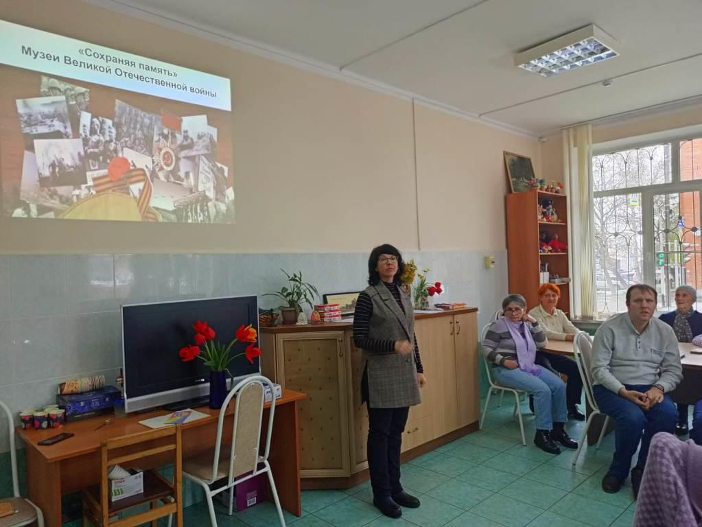 В отделении дневного пребывания граждан пожилого возраста и инвалидов ГБУ РА «КЦСОН в г. Майкопе», в целях сохранения исторической памяти, в ознаменование 80-летия Победы в Великой Отечественное войне 1941-1945 годов, в благодарность ветеранам в рамках национального проекта «Активное долголетие» культорганизатор Минкарская Ирина организовала и провела виртуальные экскурсии по музеям Победы.